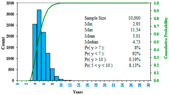 Histogram of Monte Carlo simulation results for the payback period.