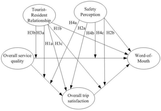 The above literature reveals that the relationships between service quality, satisfaction, and WOM are well-established. Therefore, this study attempts to make a contribution by examining the influence of the tourist–resident relationship and safety perception on perceptions of service quality, trip satisfaction, and WOM with regard to a given urban destination.