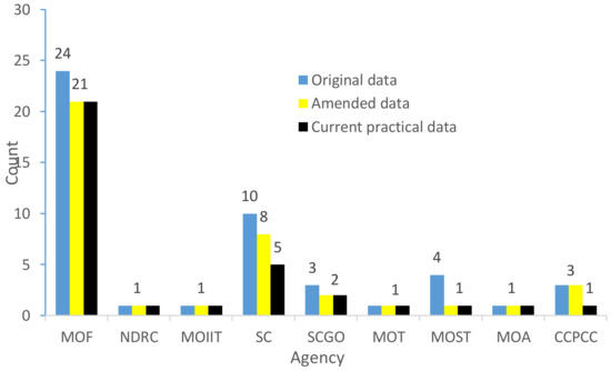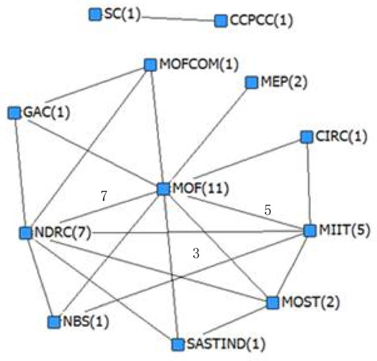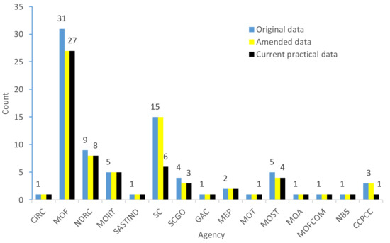 For quantitative analysis, this article utilized the policy bibliometrics method, which is a quantitative analysis method used to identify the policy’s external characteristics [86]. We conducted a comparative analysis of policy-making frequency and policy-making agencies, which is important background information. The agency’s policy-making frequency represents the degree of participation in making policies. By analyzing policy-making agencies, we can focus on that agency’s status as a leading or collaborative role in the policy-making processing.