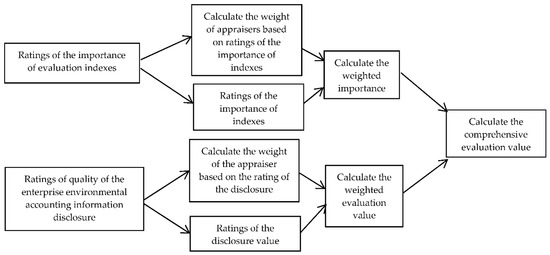 After deriving the importance of the index and the evaluation value of the disclosure performance of the enterprise and integrating them with the corresponding weight of appraisers, the final evaluation results can be obtained. The specific calculation process is from Step 6 to Step 7.