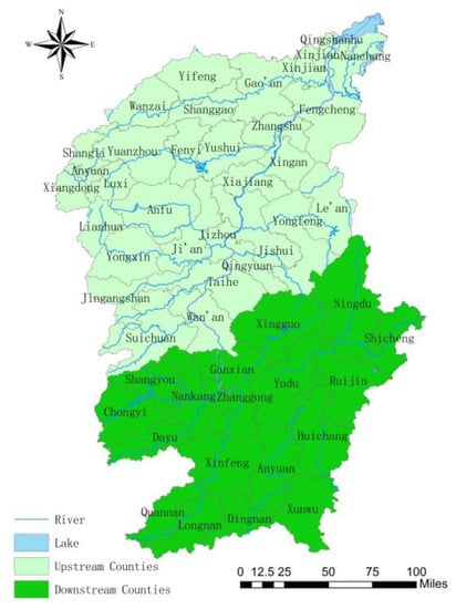 The ecological depravation of the river basin has become prominent, and has accompanied the rapid growth of China’s economy [,]. Furthermore, due to the absence of an ecological structural compensation policy and linkage mechanism [], the relationship between the upstream and downstream stakeholders has increasingly gotten worse []. After the central government put forward a strategy of ecological civilization construction [], a series of ecological compensation measures for river basins was proposed. For example, at the end of 2015, Jiangxi Province introduced an implementation scheme (The Implementation Scheme of River Basin Ecological Compensation in Jiangxi Province (Trial)), which further increased ecological protection, in response to a tighter constraint on water resources, water pollution, and the serious situation of water degradation []. Such policies have to some extent ameliorated the ecological environment and improved the ecosystem of the river basin. However, most policies attach importance to the role of government control on the macroeconomy and market regulation mechanism, while ignoring the importance of stimulating public participation. Meanwhile, they pay close attention to the economic attributes of environmental products, while losing sight of the social and ecological attributes that are more likely to inspire public participation, which could affect the formulation and improvement of relevant policies. In April 2015, China issued a notice (The Notice of the State Council on the Action Plan for the Prevention and Control of Water Pollution), which outlined 10 specific requirements for water pollution control, and for the first time highlighted the importance of public participation []. The process of watershed ecological governance needs to consider the will of various stakeholders, especially third parties (i.e., the public). In February 2017, Document No. 1 (The Central Committee’s Document No.1 of the Chinese Communist Party) put forward the issue of focusing on the pollution of rivers and lakes, and strengthening the construction of major ecological projects [].