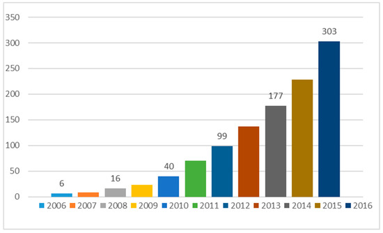 Solar PV (photovoltaic system) global capacity, 2006–2016. Source: Renewables 2017 Global Status Report [6].