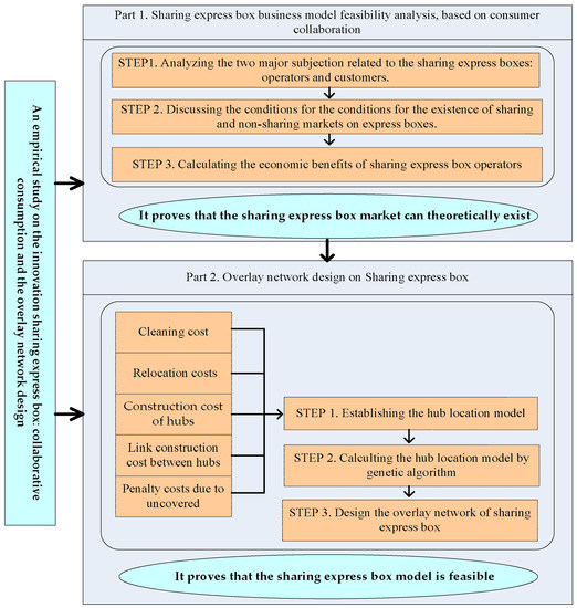 This paper is structured as follows: Section 2 provides a detailed literature review on sharing express packages, collaborative consumption and hub location; Section 3 demonstrates the economic feasibility of sharing express boxes through collaborative consumption theory; Section 4 presents the process of hub location model establishment based on the principle of minimizing the overall costs; a numerical example is given in Section 5, in which the importance of the relevant variables is also considered; finally, the relevant conclusions, the research direction in the future, as well as the inadequacies are discussed in Section 6.