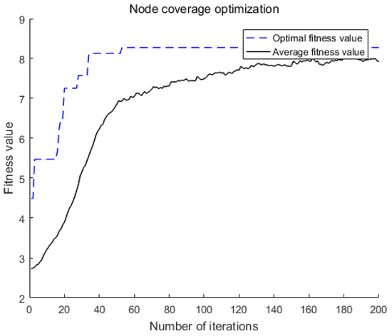 In this section, the feasibility of the research method is illustrated by a case study. First, 80 coordinate points are selected in region B, which is a more economically developed city in China, as shown in Table 4. Then, through a market survey and related literature analysis to obtain the required data information, we include: (1) Non-determinism: the demand at the node and the number of relocations between facilities; it is assumed that these two quantities satisfy the normal distribution, the demand meets a normal distribution with a mean of 4000 and a variance of 2000, and the number of relocations meets a normal distribution with a mean of 200 and the variance of 70. (2) Determinism: Unit relocation costs, coverage, fixed construction costs, link construction unit costs, penalties incurred without coverage, cleaning costs, and unit transportation costs. The values are: $1.8781, 5500 m, $626.0173, $62.6017, $156.5043, $0.626 and 40 m. Finally, with the aid of the operating system Windows 7.0, MATLAB, the genetic algorithm is used to calculate the overall objective function that is established in Section 4. Among that, the population size is 500, the number of iterations is 200, the crossover probability is 0.5, and the probability of mutation is 0.2.