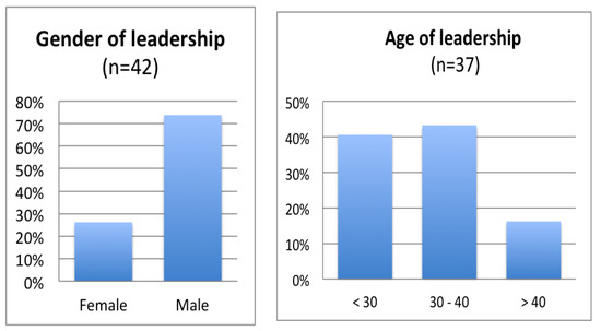It is clear from Figure 5 that most maker initiatives are led by young males and that this is quite similar to the situation seen in the majority of technology-based start-ups and new enterprises. Female leaders constitute only 26% of all maker leaders in the Barcelona sample. These gender and age distributions are also in line with the results of the ten MAKE-IT case studies from across Europe, i.e., the majority of maker managers are male (9 out of10), while the gender ratio among users varies from 80:20 to 60:40, and most are relatively young, between 20 and 40 years of age. Again, this gives some confidence that the samples reflects maker initiatives more widely.