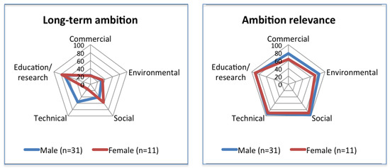 Long-term ambitions and relevance of maker initiatives, by gender.