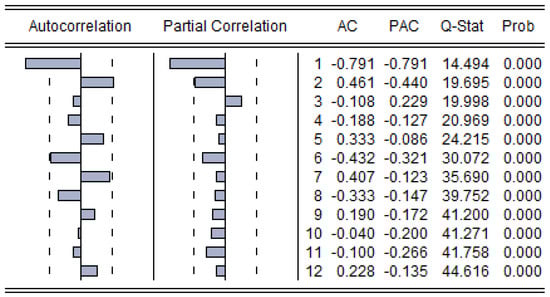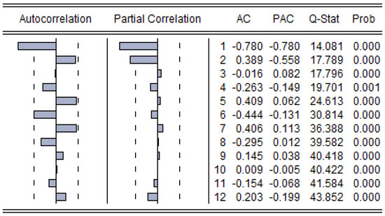 Table 6, the second-order difference is stable. Then, we drew a correlation coefficient graph for a stationary sequence (shown in