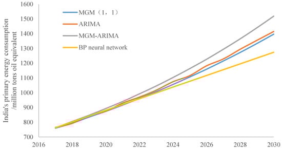 9]. We establish four models, metabolic grey model (MGM), autoregressive integrated moving average model (ARIMA), back propagation neural network model (BP), and the combination model of MGM and ARIMA, to forecast India’s primary energy consumption by 2030. The models are based on three theories. The various methods were compared with each other, making the results more persuasive. In this paper, we use mean absolute percentage error (MAPE) and root mean square error (RMSE) to show the results’ reliability.
