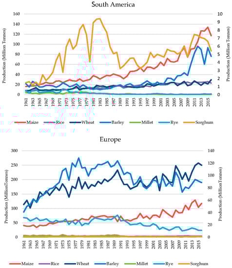 - Awika, J.M. Major cereal grains production and use around the world. In Advances in Cereal Science: Implications to Food Processing and Health Promotion; ACS Publications: Washington, DC, USA, 2011; pp. 1–13. [Google Scholar]