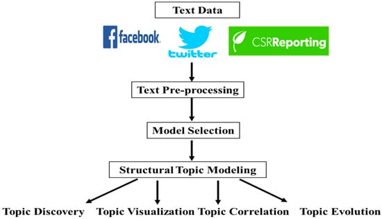 This study adopts computational content analysis [16,17] for understanding themes or topics from CSR-related conversations in the Twitter-sphere, the largest microblogging social media platform. Computational content analysis, a big data analytics method, is suitable to process big text data and discover hidden patterns in the data. Specifically, a probabilistic topic modeling-based computational text analysis framework is introduced to answer three questions: