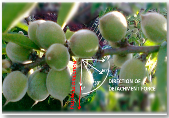 By varying the application angle of the detachment force, the green fruits behaved as described in Figure 4.