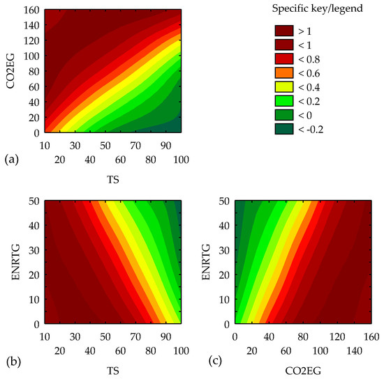 However, in Figure 2c, it can be noticed that the need to apply the paradigm shift occurs only at high levels of carbon dioxide emission intensity at each level of energy consumption in road transport. If the intensity of carbon dioxide emissions is not too high, then the implementation of the paradigm shift is not desirable.