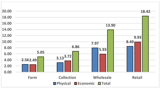 Percentage of physical, economic, and total postharvest losses along the banana value chain (Source: Survey data).