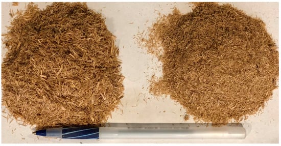 Coarse (left) and fine rice straw fibbers.