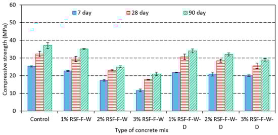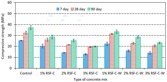 3.2. Impact of RSF Addition on Concrete Strength