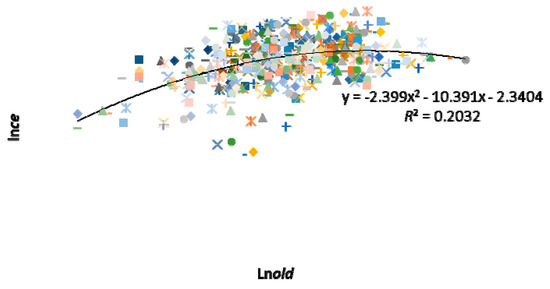 The relationship of carbon emission (lnce) and population aging (lnold).