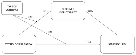 In this sense, workers with a higher level of PsyCap may be more inclined to gain new resources, enhancing their perception of employability, and at the same time, they may decrease the resource loss, including also the likelihood of perceiving job insecurity [15]. Therefore, we expect that the negative relationship between PsyCap and job insecurity will be mediated by perceived employability. Accordingly, we formulated the following hypotheses.