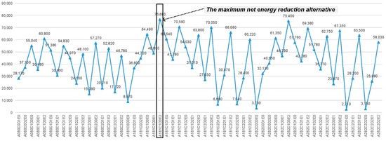 Ultimately, based on the calculation methods used above, the recovery period as well as the net energy savings quantified were estimated with the net present value (NPV) method in Equation (4). Table 4 shows the settings for the NPV method.