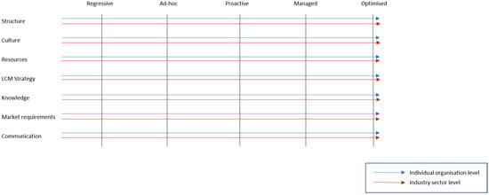 Proposed maturity scale for organisations and industry sectors on LCM Strategy.