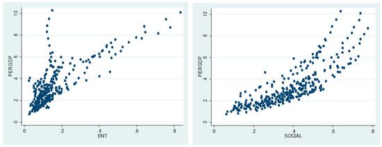 The scatter plots demonstrate relationships between entrepreneurship, social networks and regional economic growth as following Figure 2 shows. Specifically, the scatter plot with entrepreneurship and regional economic growth conveys that there is a significant positive correlation between these two factors, which shows that the development of the entrepreneurial economy can promote regional economy growth, to some extent. Additionally, in the scatter plot between social networks and regional economic growth, it can be seen that there is also a significant positive correlation between these two factors, which shows that the improvement to efficiency of social resource acquisition would enhance the output of economic activities. In all, to some extent, the above results verify the theoretical framework proposed before, from the perspective of a qualitative analysis.