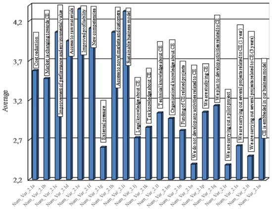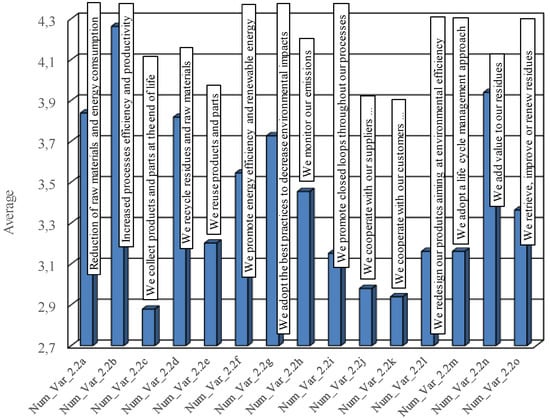 Level of CE intensity on the organization (G 2.2a to G 2.2o) after transformation from Ordinal (G) to Numerical Variables (Num-Var).