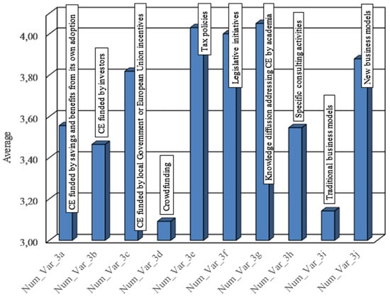 Level of agreement with actions to promote CE (G 3a to G 3j) after variables transformation from Ordinal (G) to Numerical (Num_Var).