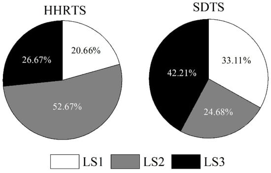 On the basis of the sources and structure of household income, we divided terrace system households into three types: pure agricultural households (LS1), nonagricultural households (LS2), and part-time agricultural households (LS3). In general, the HHRTS has the largest number of LS2 households, which means their livelihood strategies have a higher degree of nonagriculturization. SDTS households, however, were more likely to fall into the LS3 category, indicating a high level of diversity of livelihood strategies in the SDTS (Figure 1).
