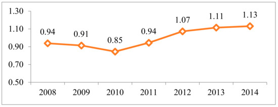 The course of Index for Revenues of Passengers (IROP) indicator between 2008 and 2014.