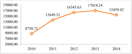 This indicator shows the benefit that the enterprise gains from the trainings performed in the given year. In the specific case, one training performed, regardless of its area, brought from €8750.71 to €15,459.92 between 2010 and 2014. The biggest impact on the sales was recorded in 2013 (Table 3, Figure 5). Besides other significant factors, there is also an evident impact of activities from previous years on the course of sales. The increased value of the human capital will be gradually transformed into the value of sales in the future. Of course, using a multi-criterial analysis, it would be possible to study whether the investments in education really contribute to the increase of an enterprise’s performance. However, the benefits from education for the improvement of performance are being perceived also by the management.