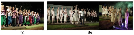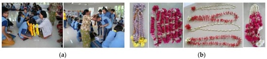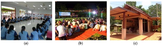 The museum prioritizes the interpretation of “person”. This means that the indigenous curator of the museum is a local person who works co-operatively to develop individuals in the community continually as well as the working capacity of the museum and the community itself. This developmental work is consistent with the definitions of the local museum as specified by the National Museum of Anthropology in Mexico City (as cited in Tojarat Phongsari [12]), Panita Sarawasi [13], Srisak Wanlipodom [14], Liu and Lee [15], and Sutter et al. [16]. The groups organized by the indigenous curators of the local museum of Thai Bueng Khok Salung can be divided into three age groups: children and youths, adults, and elders. The group of children and youths is responsible for learning new knowledge that is going to be useful in developing their own community. The people in this group are expected to be successors who carry on the work of the museum. The group of adults is responsible for strategic planning and teaching the children and youths about the work of the museum. Last, the group of elders is responsible for teaching the next generation to be aware of the identity of the community. This group of indigenous curators also helps with various activities of the museum as local intellectuals (see Figure 25).