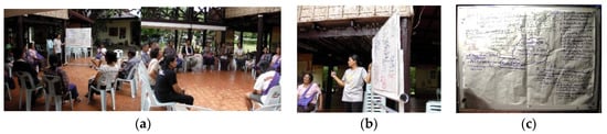 The indigenous curators of the local museum of Thai Bueng Khok Salung: (a) the indigenous curatorial group of children and youths; (b) the indigenous curatorial group of adults; and (c) the indigenous curatorial group of elders (Source: Jirawan Sirivanichkul).