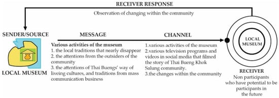 The work at the local museum of Thai Bueng Khok Salung aims to interpret the identity of the community with experts who best understand the interpretation of heritage and are members of the community. The learning activities of the museum increase awareness about local values. They also encourage people in the community to develop themselves based on their own culture. At the same time, academic works and research by curators, scholars, and researchers, also offer additional knowledge on the self-development of the community. Furthermore, the community also employs such research when requesting support or budgets that could help the community to work. This system corresponds to the “big town strategy” [29] which is a strategy that prioritizes the acceptance of people outside the community. When outsiders admire the value of the community, the people in the community are motivated to be aware of their own value. Then, genuine sustainable development can take place.