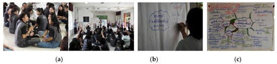 The Maled Kao Pluek Thai Bueng group was established to help in the development of the children in the community. The group encourages local children to know about their background and the community’s identity. The name “Maled Kao Pluek” (paddy) is a metaphor that compares a child with paddy, where the child grows in knowledge and in physical and mental abilities [28]. The group was started by some middle-school students from two local schools—the Khok Salung school and the Nhong Ta Ming school—which were selected by the strategic planning group. The Maled Kao Pluek Thai Bueng group is responsible for teaching working procedures that relate to the work of the museum for the next generation. Children in the group learn about setting up camp procedures, cooperative working, and other knowledge taught by outsourcers. After they join the group, they gain the necessary knowledge for work (for example, the knowledge of filming a short documentary about the community and the procedure of setting up a camp).
