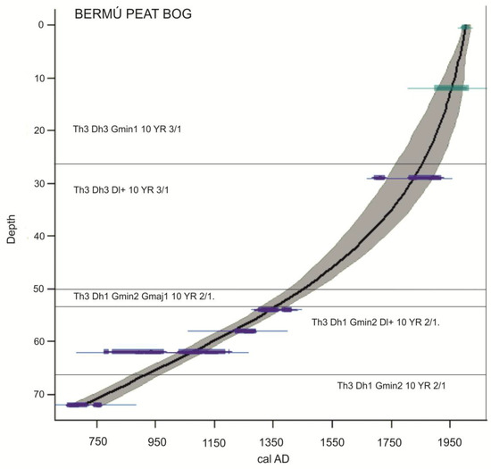 - Blaauw, M. Methods and code for classical age-modelling of radiocarbon sequences. Quaternary. Geochronology 2010, 5, 512–518. [Google Scholar] [CrossRef]