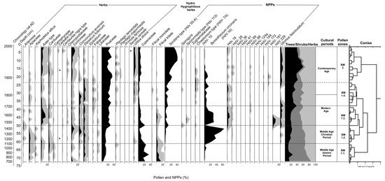 - Bennett, K.D. Determination of the number of zones in a biostratigraphical sequence. New. Phytol. 1996, 132, 155–170. [Google Scholar] [CrossRef]