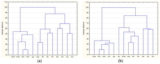 Data analysis was organized in two steps: (i) exploratory analysis, based on univariate and multivariate approaches, with the objective to analyze long-term changes (50 years) in the spatial distribution of cropland in the study area and (ii) regression models, investigating medium-term changes (10 years) in cropland expansion (or decline) and identifying the main forces at the base of such transformations. Descriptive statistics (including average and median, coefficient of variation, maximum value, coefficient of variation, kurtosis, and asymmetry) describing the spatial distribution of the dependent variable in the municipalities belonging to the study area were calculated at the beginning (1960) and the end of the study period (2010). The relationship between the dependent variable and the linear distance from downtown Athens was illustrated using scatterplots at the same two time points and adapting a square goodness-of-fit polynomial curve to the observations (n = 114). A hierarchical clustering (using Ward’s agglomeration rule based on a Euclidean distance matrix) was run for the same time points (1960 and 2010) with the aim to group separately (i) variables and (ii) municipalities of the study area on the basis of their similarity patterns [38], thus allowing for the identification of specific territorial profiles associated with high and low levels of percent share of cropland in total municipal area [39]. Based on descriptive and multivariate techniques, a statistical analysis run on aggregate data at the beginning and the end of a long enough time period—as in the present study—may provide an enhanced interpretation of metropolitan transformations with impact on land use distribution [40].