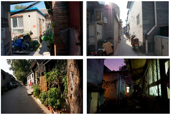 However, two points deserve further discussion. First, the courtyards’ size, location, decoration, and other characteristics have changed, and they are not the same as in the past due to changes in the living conditions in these courtyards and due to Chinese architecture’s civil structure (Figure 4 and Figure 5). Second, these characteristics are almost entirely uniform in the courtyards in North Xisi. Therefore, the changes in the courtyards and architecture have made depleted them of architectural meaning and made them unrecognizable.