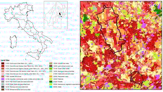 Green infrastructure can comprise several urban ecosystems including parks and woodland, blue areas (lakes and streams), greenery, semi-natural areas and other urban features such as green roofs and street trees. In particular, for high-density urban contexts, green infrastructure aims at the following actions: (i) environmental protection and integration of agriculture into urban context, providing specific new agricultural land-use types such as agricultural parks, community supported agriculture, and allotment gardens; (ii) development of suburban green areas in order to provide a more equal distribution of public parks and gardens; and (iii) enhancement of current urban green spaces by improving quality, usability, and accessibility [5]. Ecosystems included in the green infrastructure provide important functions and relative services, such as CO2 sequestration, production of O2, reduction of air pollutants and noise, regulation of microclimate and heat island effect, flood damage reduction, filtering water, pollination and supply of recreational value, and play a fundamental role in health, well-being, and social safety [6,7,8].