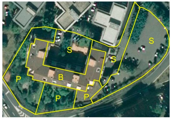 Landownership Analysis. Visual interpretation of high-resolution orthophoto (25 cm, 1:10,000) on a sample Compound (B = building, P = private open space, S = shared open space).