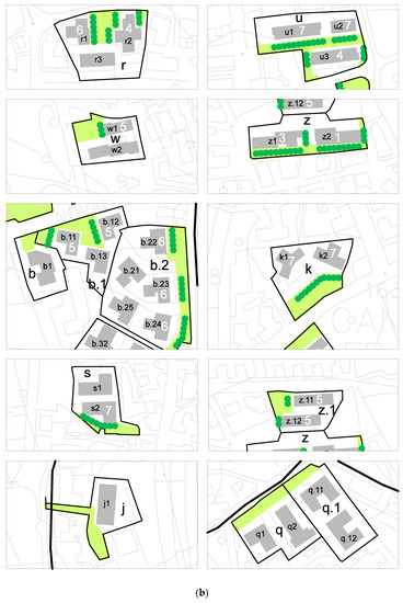 Beside the positive relevance of the results, the proposed strategy also shows some limitations. Implementing a green infrastructure is not always viable and may be strongly affected by the quality and amount of the open spaces to be acquired. The size, shape and location of the shared open spaces within the compounds were not always considered suitable for conversion into components of a green network. Their reduced size and narrow shape could negatively affect the design of the green intervention while their location, remoteness and interrelationship with the private residential buildings could affect the real possibility to connect open spaces to existing public gardens and roads. Moreover, the amount and the geographical distribution of these open spaces (which could be concentrated in specific areas) could generate some inequality in the provision of new urban green spaces at municipal level [46].