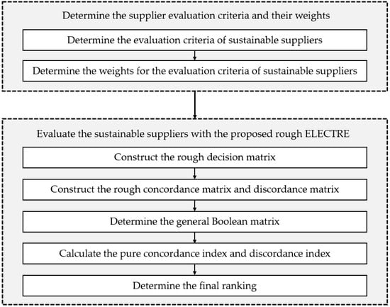 The main objective of this paper is to propose an integrated method for sustainable supplier selection based on rough set theory and ELECTRE. Besides, vagueness manipulation is also considered in the proposed approach. A flowchart of the proposed approach is shown in Figure 1.