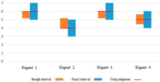 According to the Equations (17)–(26), we use for the cth expert’s evaluation towards alternative b in criterion a. We can get the rough matrix in Table 5.