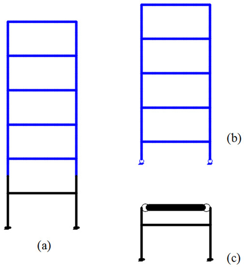 To meet the equilibrium and compatibility in the axial and rotational direction at the boundary, more than two hydraulic actuators are required, as well as appropriate sensors to measure the rotational angle and the axial deflection, which can be challenging. To address the problems, a new boundary technique based on the inflection point is proposed, as shown in Figure 1c. The bending moments at the section of the inflection point in a structure is zero; therefore, this new boundary technique can effectively avoid the complex operation for realizing the bending moment at the boundary. However, two new problems arise in the proposed boundary technique: (i) how to calculate the horizontal displacement of the inflection point; and (ii) how to meet equilibrium and compatibility in the axial direction.