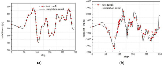 Figure 18 and Figure 19 also show that the test results of internal forces are close to the simulation one. Table 3 gives the relative errors at the peak of the internal force. In Table 3, the maximum relative error is less than 10%, showing good performance of the proposed boundary technique based on the inflection point.