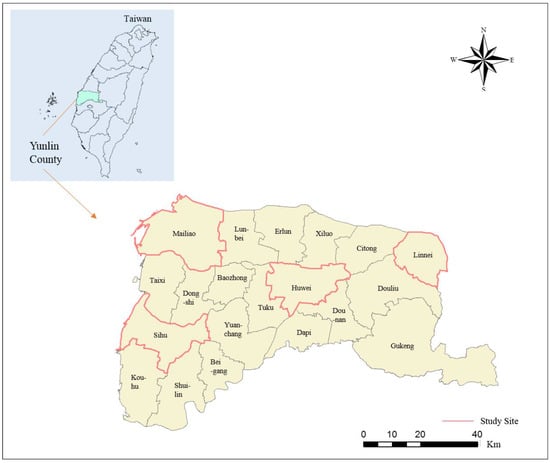 Taiwan, as an island state, faces frequent threats of extreme weather events. During the rainy season, typhoons and rainstorms cause flooding and geological disasters, which frequently result in severe soil and rock caving in hillside areas and debris flows in mountainous areas. The rising sea level causes flooding in coastal areas, where the intrusion of seawater and the difficulty of rainwater venting co-exist, resulting in severe agricultural and economic losses in central and southern regions, especially Yunlin County. Yunlin County is the main agricultural county in Taiwan. Long-term labor outmigration in the global economic development has made Yunlin County an aged society. Furthermore, in recent years, Yunlin County has been affected by climate change and the artificial overexploitation of groundwater, making the coastal townships prone to flooding and serious subsidence. In the face of “double exposure” [,,,,], climate change mitigation and adaptation have become particularly important to the government.