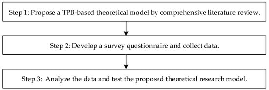 To investigate the critical factors that influence the intention of the private sector to participate in PPP projects, a three-step research methodology was employed. First, a comprehensive literature review, based upon which a theoretical, TPB-based model was proposed for this study, was conducted. Second, a survey questionnaire was developed based on the theoretical model and distributed to target respondents for data collection. Lastly, partial least squares structural equation modeling (PLS-SEM) was used to analyze the data collected from the questionnaire survey, to empirically test the proposed theoretical research model. Qualitative and quantitative methods were sequentially adopted in this study. It was expected that results obtained from different methods could triangulate and complement each other and yield stronger and more reliable findings eventually [97,104,105,106]. The conceptual map of the proposed methodology is shown in Figure 4.