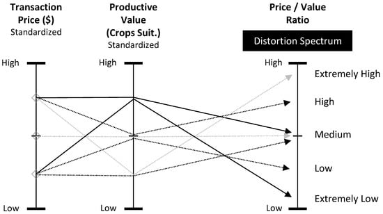The farmland price-value distortion spectrum.