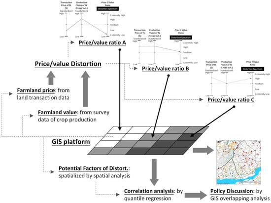 Land Administration Systems (LAS) can facilitate the sustainable development of farmland. LAS focuses land on systematic relations among various factors, ecosystem services and interaction between local and central governments [32]. The complex adaptive system can provide insights when deconstructing the complex agricultural landscape system in peri-urban area based on physical flaws and influence [33]. Additionally, Land Value Tax for non-agricultural use, real estate boom and recession may influence farmland price and distortion. It will be inspiring to employ these approaches to explore the spatial pattern of distortion ratio based on adequate and available transaction data in the future. Multifunctional use of farmland is absent from this study, but could be taken into account in future research.