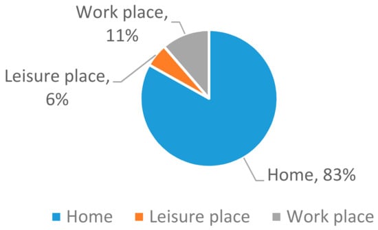 The usage locations were analyzed to show the preference of using environment. Figure 4 shows the usage locations of iTongue. About 83% usage happened at home, 11% at work place and 6% at leisure place. We consider that people feel relax when they are not involved in hard work or doing entertainment activities. We could infer that, in health-related incentives, the home could be considered as a possible place to have a better effect on users such as encouraging them to join in the health-related activities.