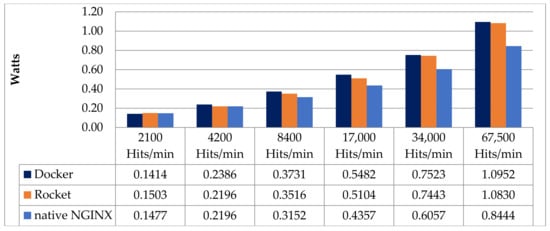 Power consumption of Rocket and Docker relating to NGINX.